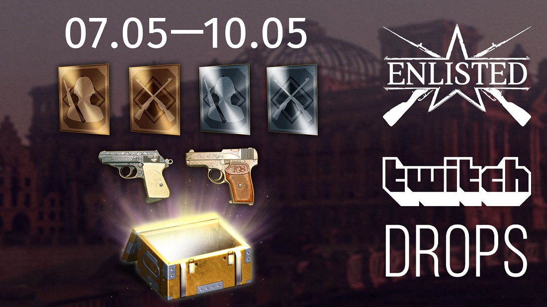 Смотрите стримы по Enlisted на Twitch с пометкой «Drops включены!» в период с 7 мая (19:00 МСК) по 10 мая (16:00 МСК).
