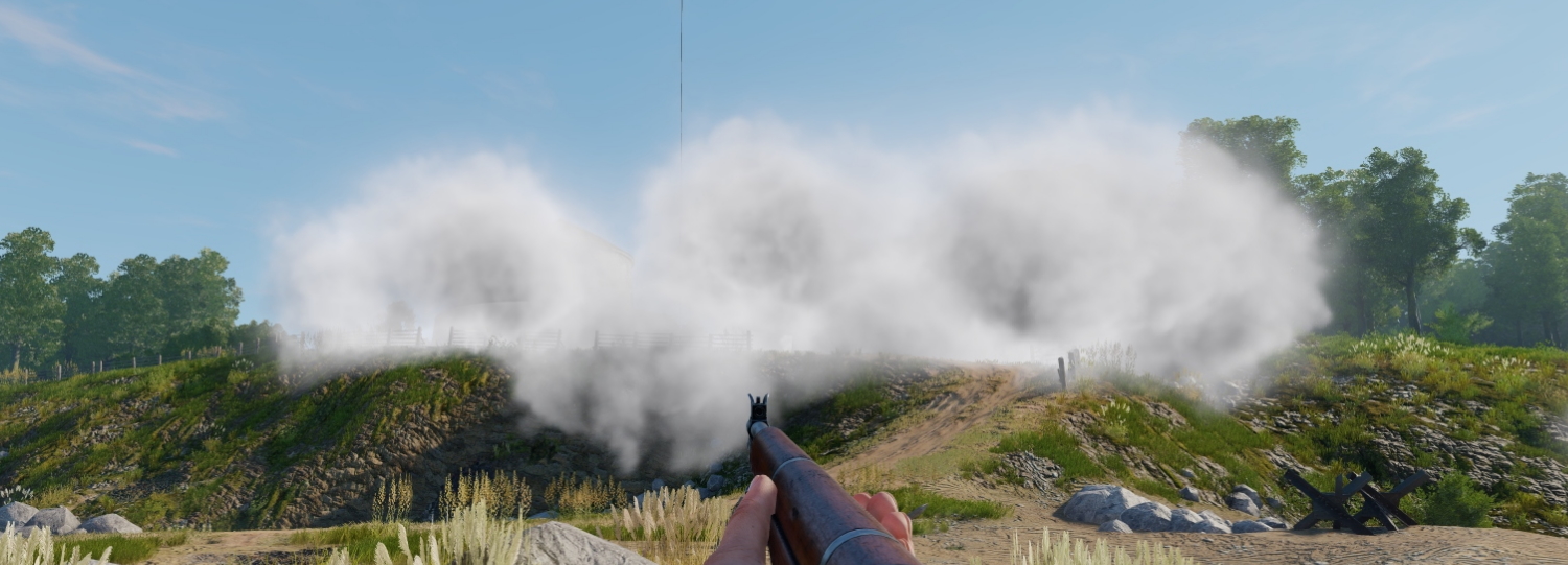 Дымовая завеса от одного артиллеристского снаряда будет примерно в 2 раза больше, чем дым от дымовой гранаты, и настолько же дольше продержится: каждый снаряд создаёт облако около 12 метров в диаметре, которое держится примерно 60 секунд.