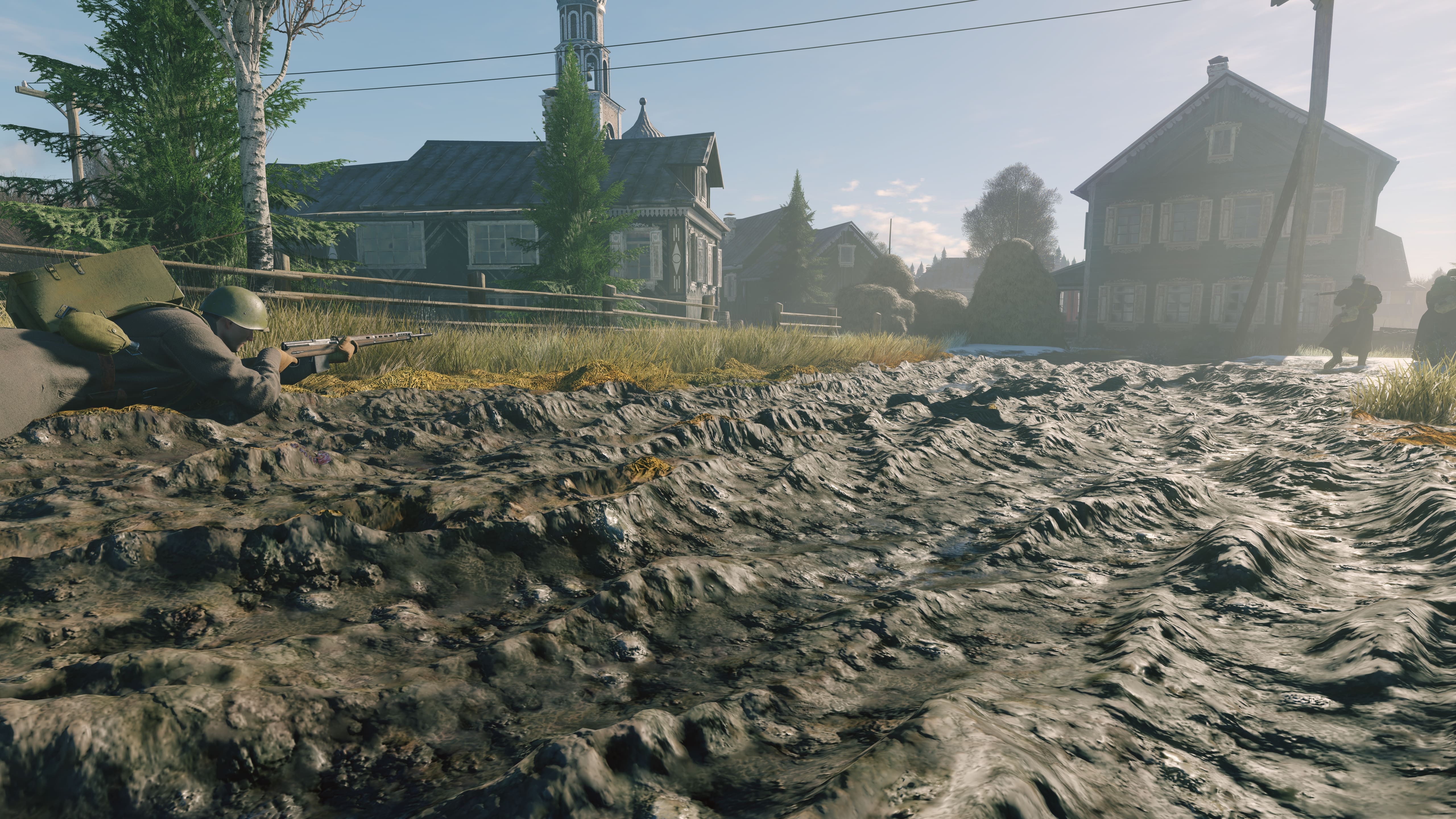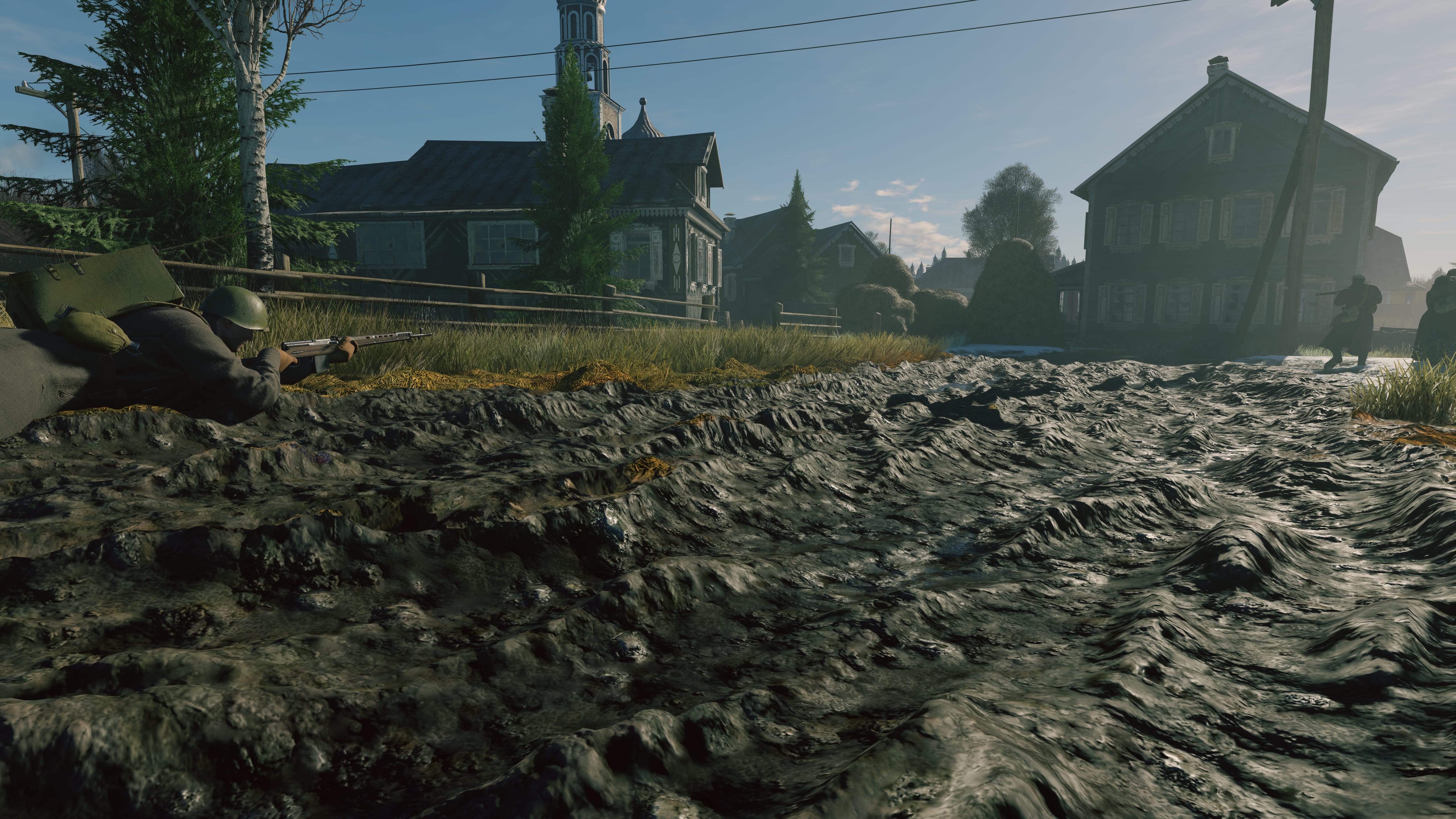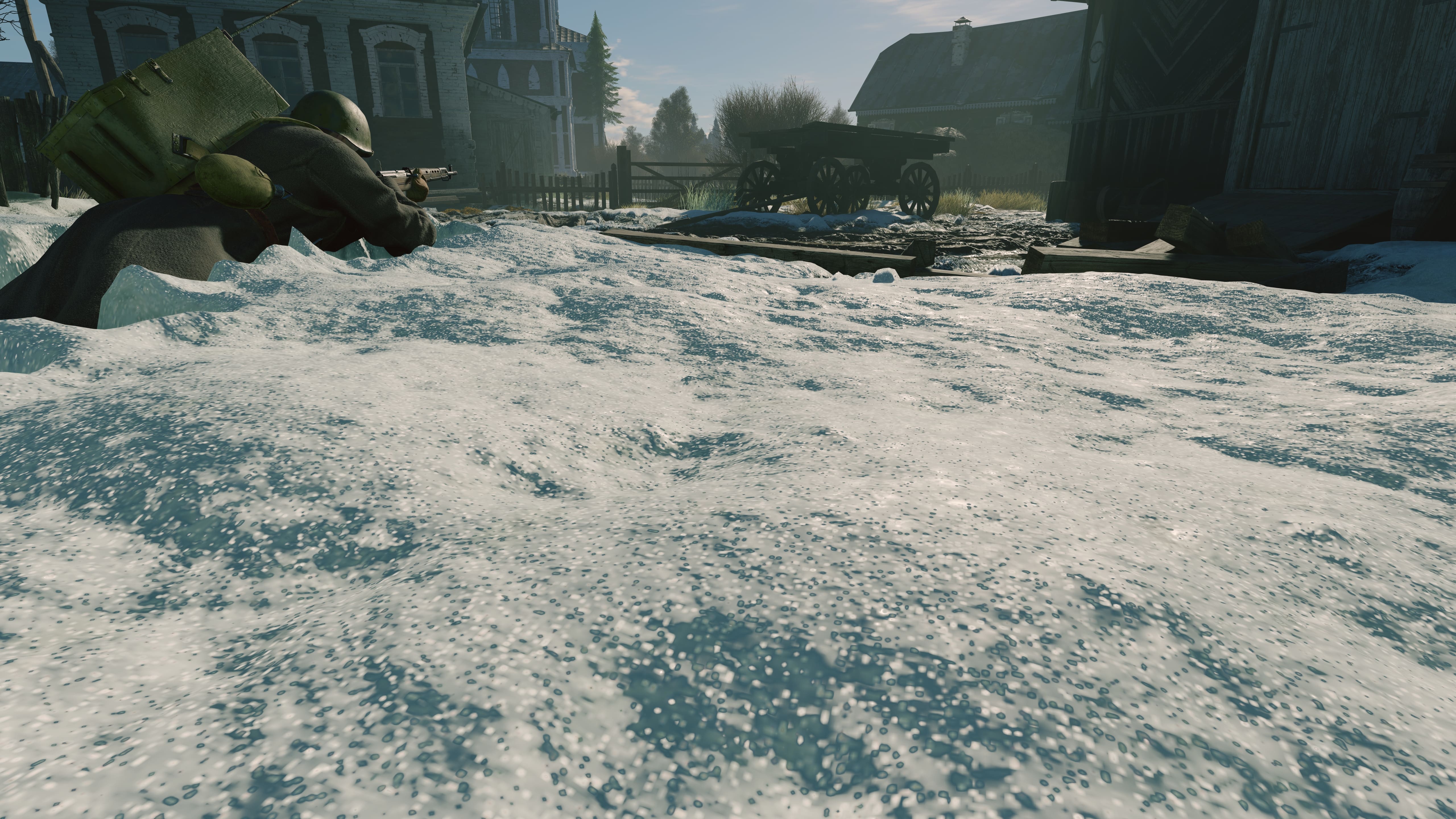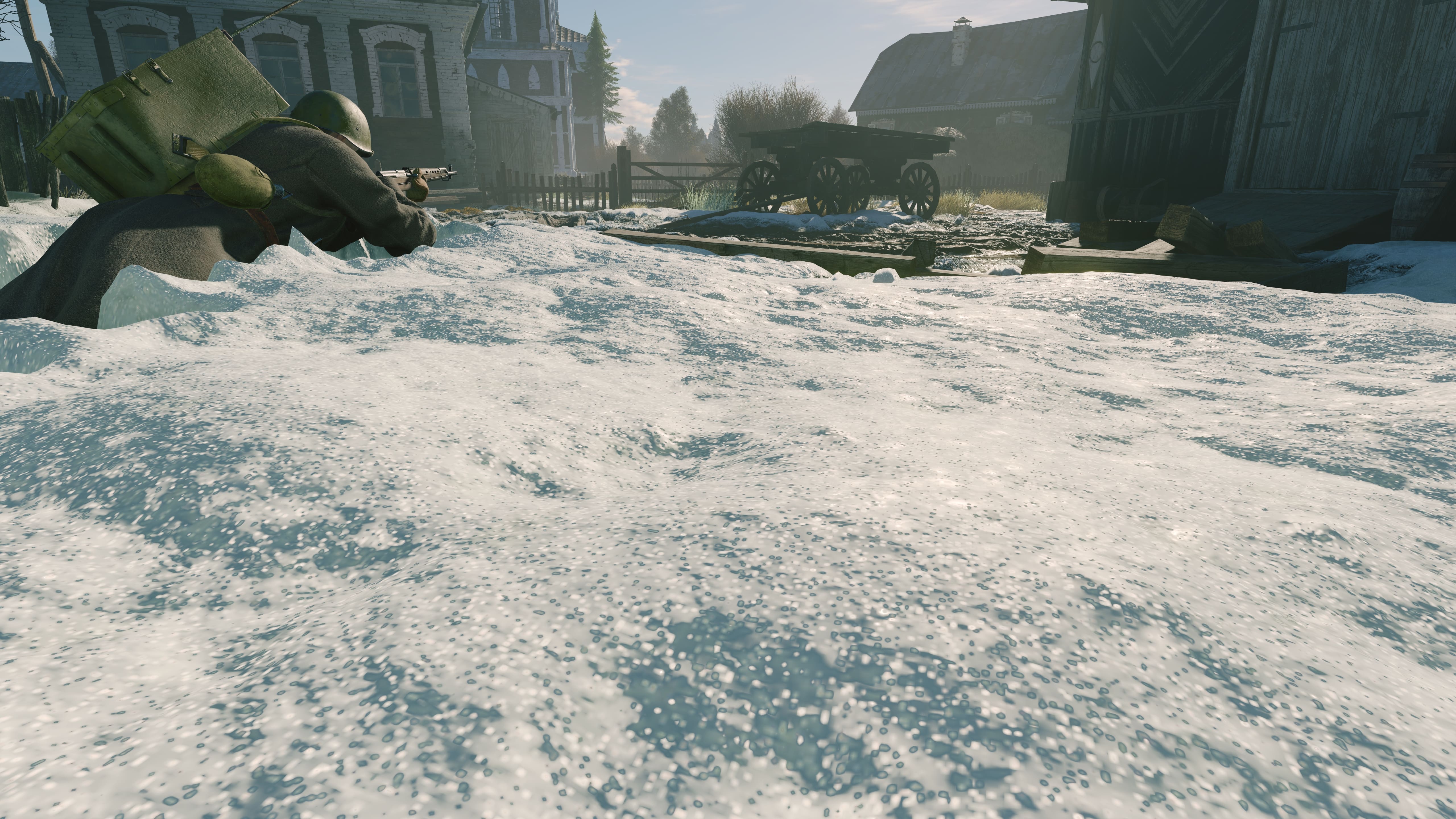 Первый тест был посвящен Битве за Москву, в осенне-зимних пригородах Волоколамска. На этой карте мы увидели следующие особенности: