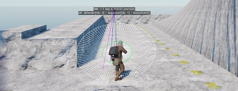 Это продолжение нашей работы, которую мы описали в прошлом дневнике. Вы уже пользуетесь появившимся механизмом расширенных команд, через который можете задавать формацию своего отряда, а ИИ-солдаты активнее реагируют на близкие опасности.